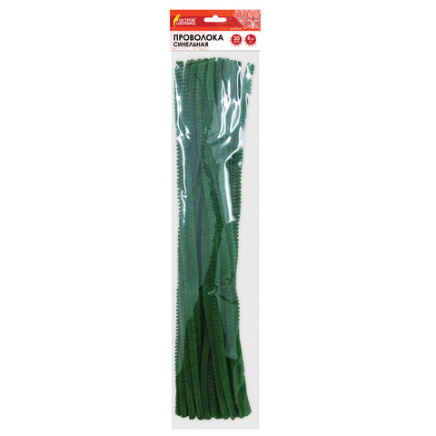 Проволока синельная для творчества "Пушистая", зеленая, 30 шт., 0,6х30 см, ОСТРОВ СОКРОВИЩ, 661535