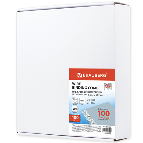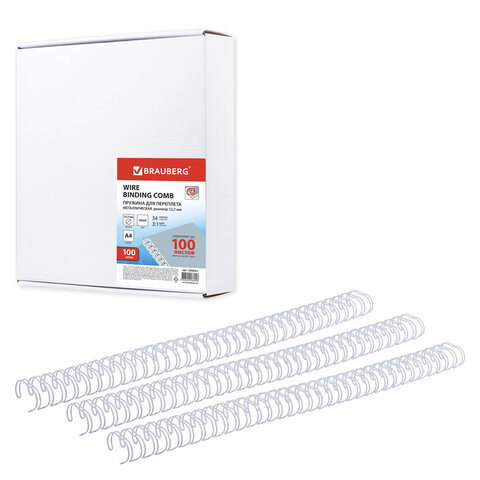 Пружины металлические для переплета, КОМПЛЕКТ 100 штук, 12,7 мм (для сшивания 80-100 листов), белые, BRAUBERG, 530823