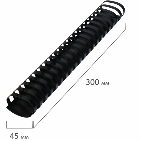 Пружины пластиковые для переплета, КОМПЛЕКТ 50 шт., 45 мм (для сшивания 341-410 л.), черные, BRAUBERG, 530932