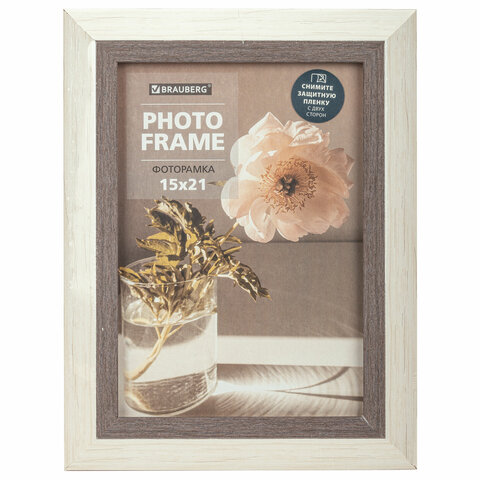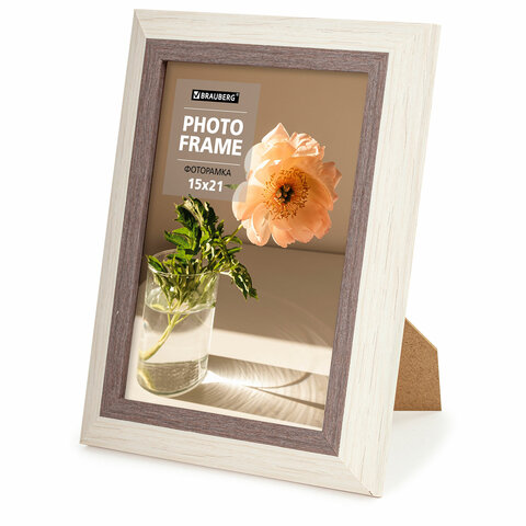 Рамка 15х21 см небьющаяся, багет 30 мм, пластик, BRAUBERG "Lambert", слоновая кость/капучино, 391250