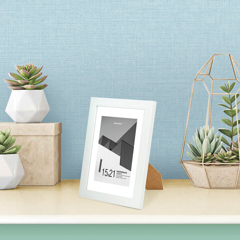 Рамка 15х21 см с паспарту 10х15 см небьющаяся, багет 20 мм пластик, BRAUBERG "New Age", белая, 391274