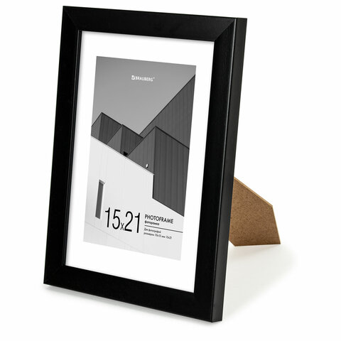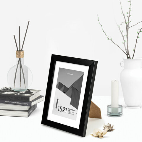 Рамка 15х21 см с паспарту 10х15 см небьющаяся, багет 20 мм, пластик, BRAUBERG "New Age", черная, 391273