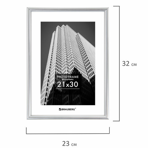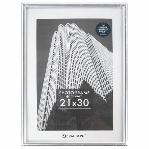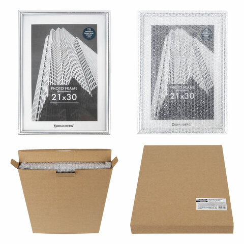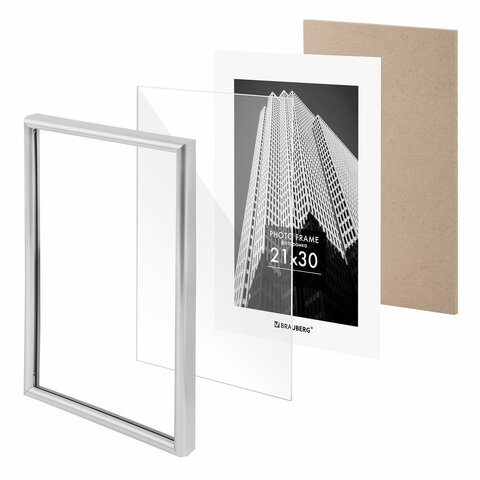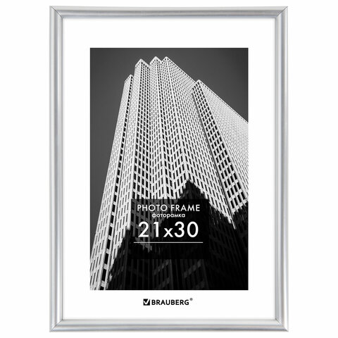 Рамка 21х30 см небьющаяся, багет 12 мм, пластик, BRAUBERG "Original", серебристая, 391231