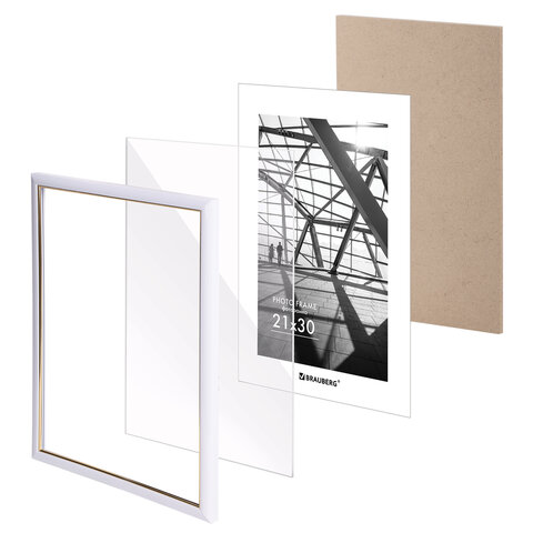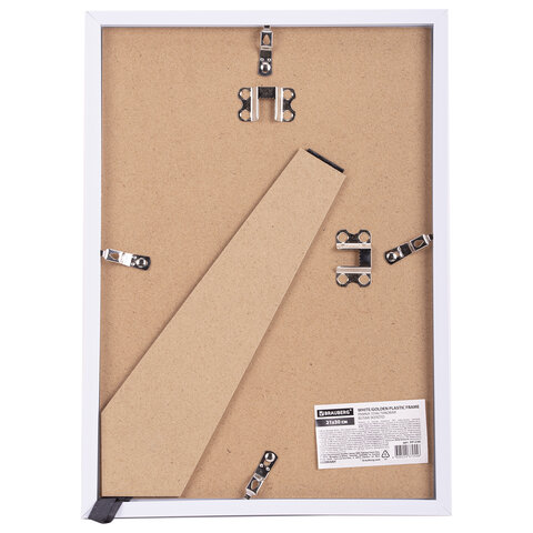 Рамка 21х30 см небьющаяся, багет 14,6 мм, пластик, BRAUBERG "Original Line", белая/золото, 391236