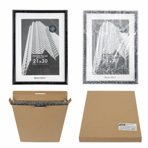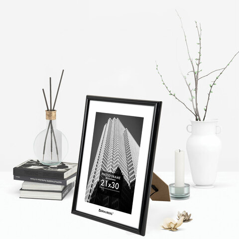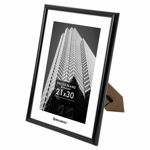 Рамка 21х30 см небьющаяся, багет 14 мм, пластик, BRAUBERG "Original", черная, 391229