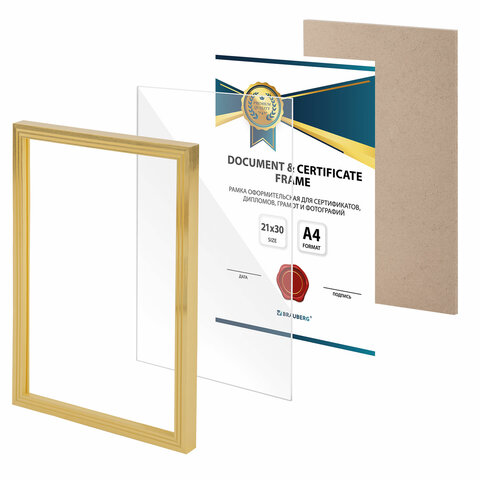Рамка 21х30 см небьющаяся, багет 15 мм пластик, BRAUBERG "Respect", золотистая, 391272
