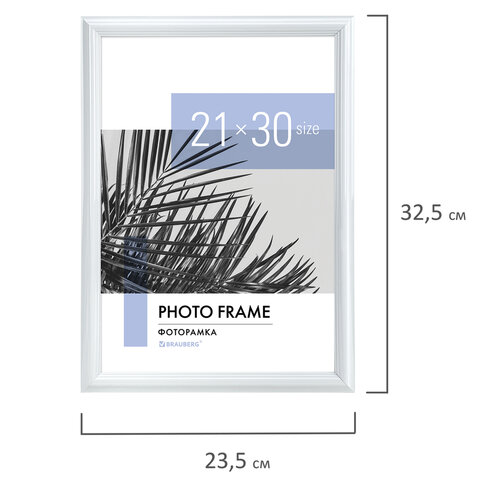 Рамка 21х30 см небьющаяся, багет 17,5 мм, пластик, BRAUBERG "Colorful", белая, 391241