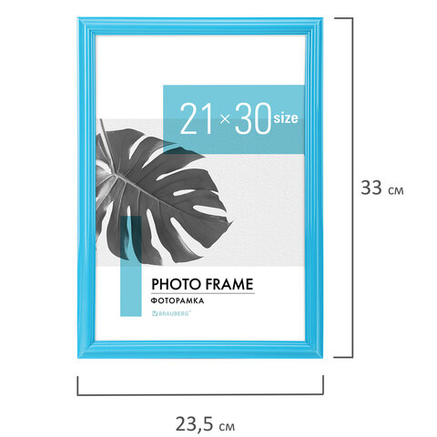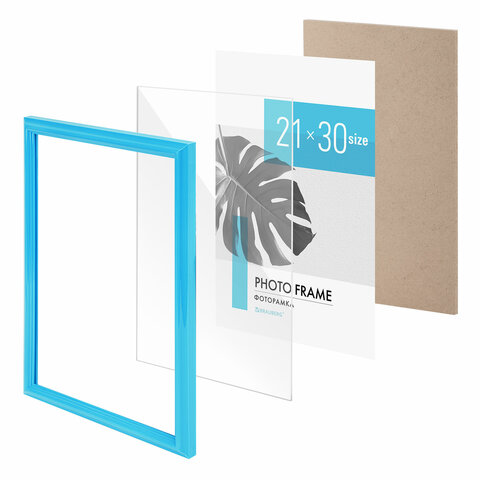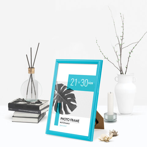 Рамка 21х30 см небьющаяся, багет 17,5 мм, пластик, BRAUBERG "Colorful", голубая, 391238