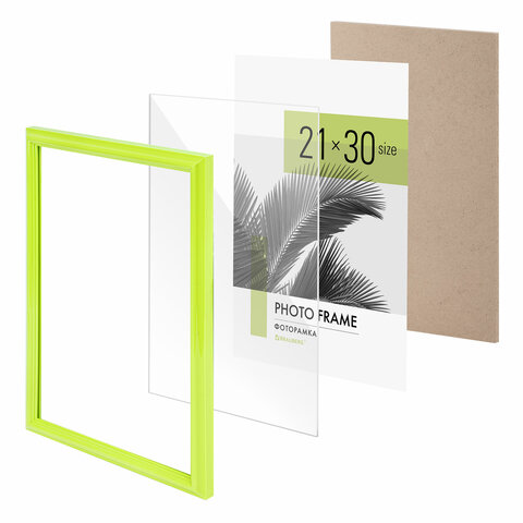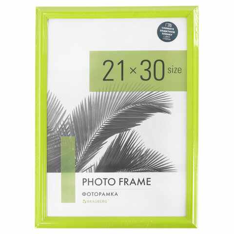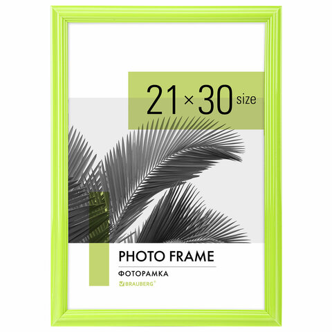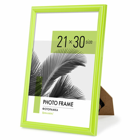 Рамка 21х30 см небьющаяся, багет 17,5 мм, пластик, BRAUBERG "Colorful", салатовая, 391244