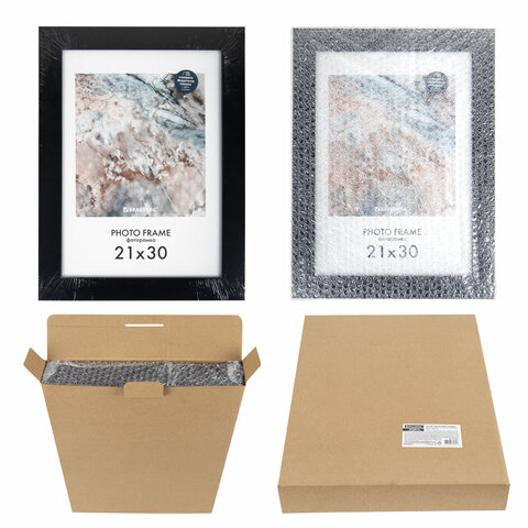 Рамка 21х30 см небьющаяся, КОМПЛЕКТ 3 шт., багет 29 мм, МДФ, BRAUBERG "Basic", черная, 391261