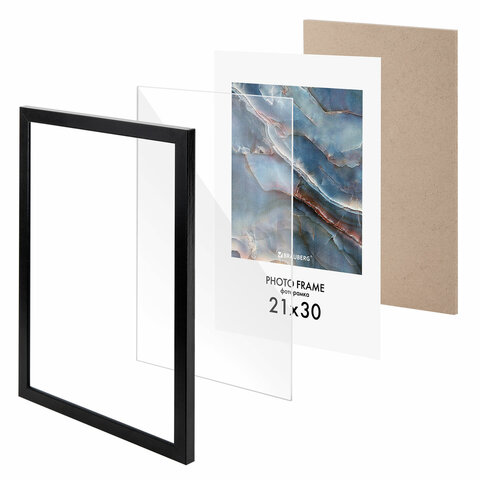 Рамка 21х30 см небьющаяся, КОМПЛЕКТ 4 шт., багет 16 мм МДФ, BRAUBERG "Basic", черная, 391259