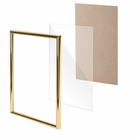 Рамка 21х30 см, пластик, багет 12 мм, BRAUBERG "HIT2", золото, стекло, 390945