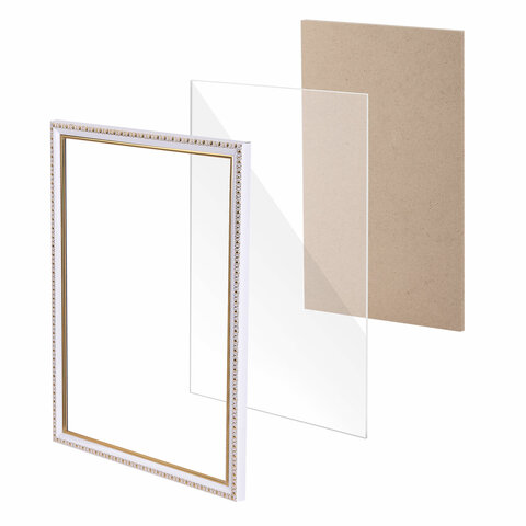 Рамка 21х30 см, пластик, багет 16 мм, BRAUBERG HIT5, белая с двойной позолотой, стекло, 391077