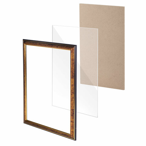 Рамка 21х30 см небьющаяся, пластик, багет 20 мм, BRAUBERG "HIT3", бронза с двойной позолотой, 390989