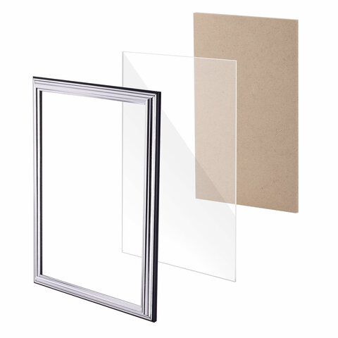 Рамка 21х30 см, пластик, багет 20 мм, BRAUBERG "HIT3", серебро, стекло, 390991