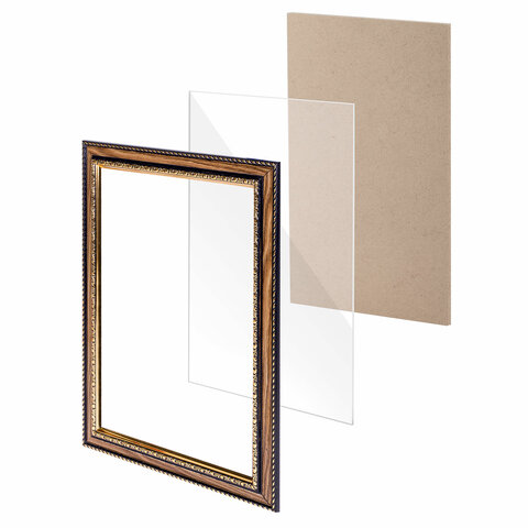 Рамка 21х30 см, пластик, багет 30 мм, BRAUBERG "HIT4", орех с двойной позолотой, стекло, 390994