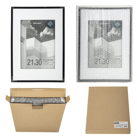 Рамка 21х30 см с паспарту 15х21 см небьющаяся, багет 5 мм, пластик, BRAUBERG "Smart", черная, 391280
