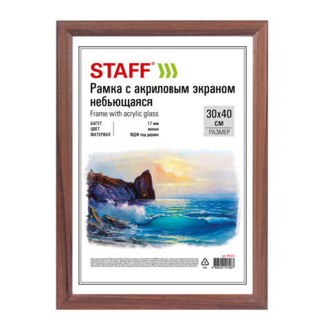 Рамка 30х40 см небьющаяся, багет 17 мм, МДФ под дерево, STAFF "Carven", цвет мокко, 391321