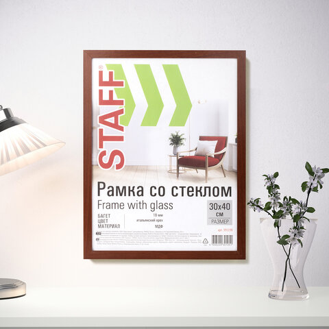 Рамка 30х40 см, небьющаяся, STAFF "Grand", багет 18 мм, цвет "итальянский орех", МДФ, 391198