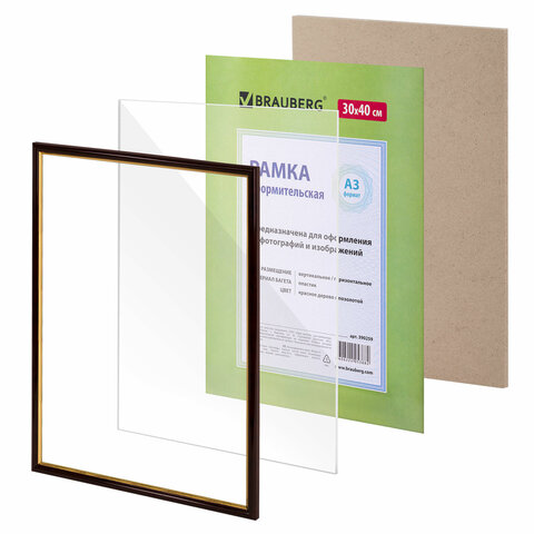 Рамка BRAUBERG "HIT" для оформления фотографий, дипломов, сертификатов, грамот, лицензий и других документов формата А3 (30х40 см) будет гармонично смотреться в любом интерьере – дома и офисе, учебных учреждениях и магазинах, салонах и предприятий и др.