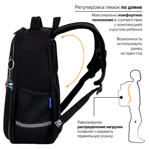 Ранец BRAUBERG серии LIGHT изготовлен из легкого, формоустойчивого, экологичного материала EVA с качественной печатью и различными эффектами. Ранец этой серии легкий, компактный, но при этом вместительный. В комплекте с ранцем идёт брелок-подвеска.