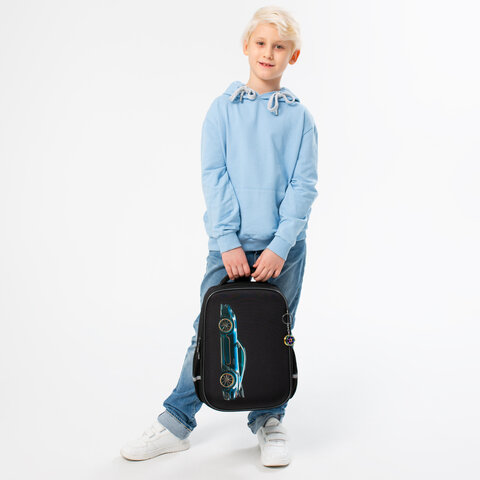 Ранец BRAUBERG LIGHT, 1 отделение, с брелком, Vertical car, 36х26х13 см, 273110