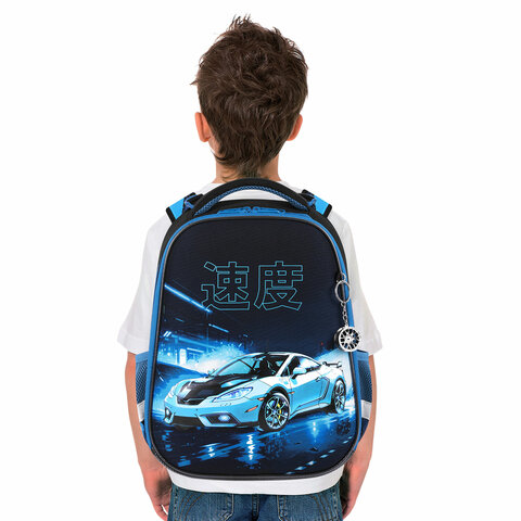 Ранец BRAUBERG PREMIUM, 2 отделения, с брелоком, "Night race", 3D-панель, 38х29х16 см, 272014