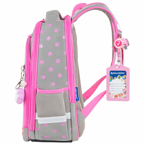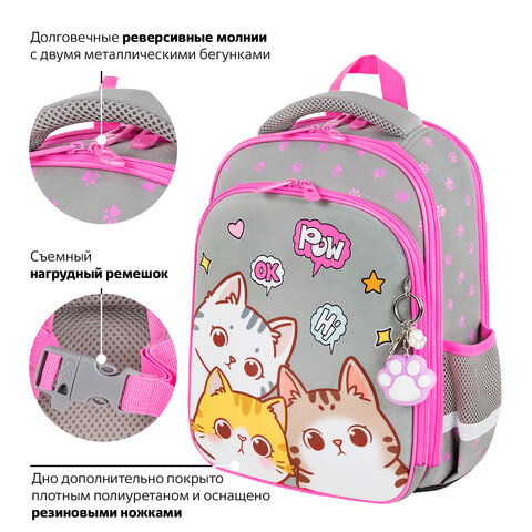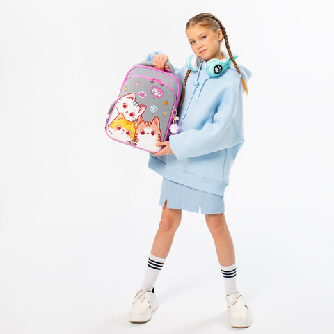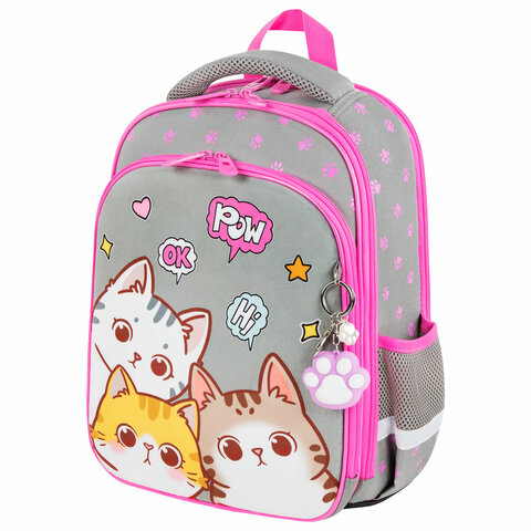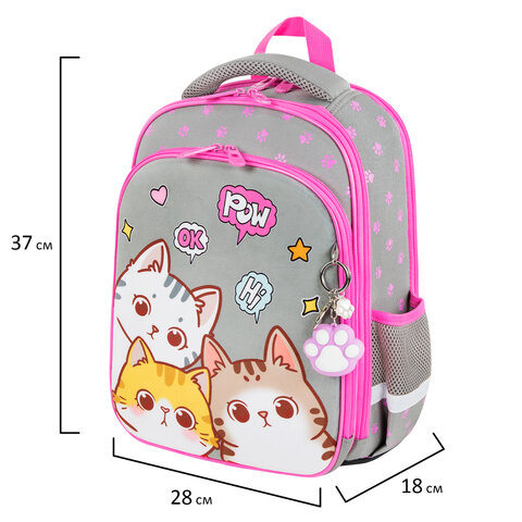 Ранец BRAUBERG QUADRO, 3 отделения, с брелком, Hi there, велюровая панель, 37х28х18 см, 273105