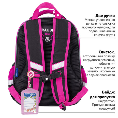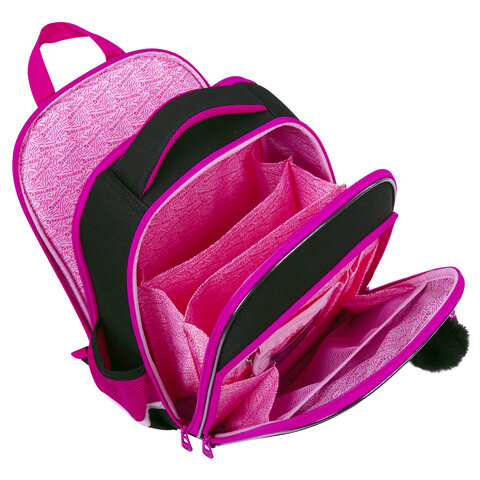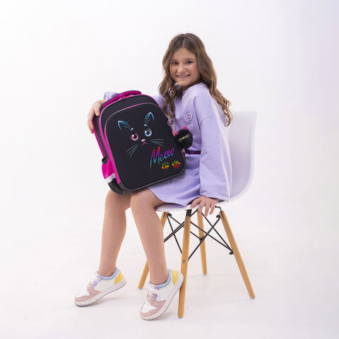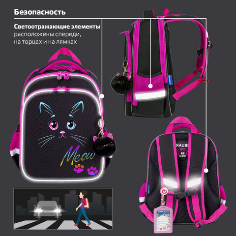 Ранец BRAUBERG QUADRO, 3 отделения, с брелоком, "Black cat", 37х28х18 см, 271358