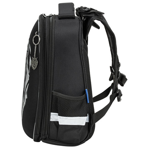 Ранец BRAUBERG SHINY, 2 отделения, с брелком, "Savage lion", светящийся рисунок, 38х28х14 см, 272039