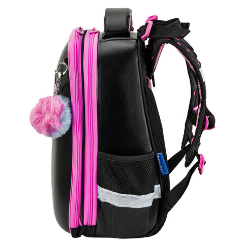 Ранец BRAUBERG SHINY, 2 отделения, с брелком, "Smiling cat", 38х28х14 см, 272040