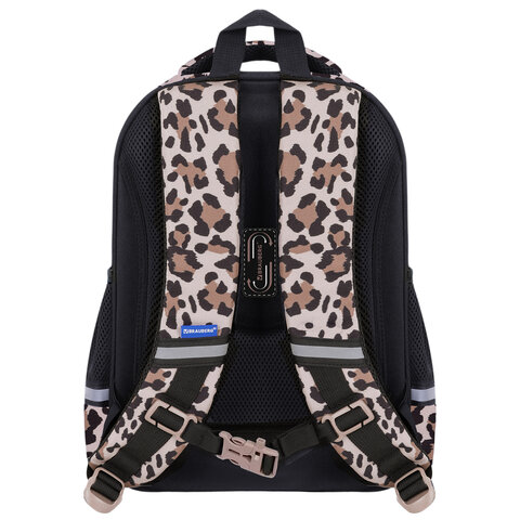 Ранец BRAUBERG STABLE, 2 отделения, с брелком, "Curious leopard", 36х28х16 см, 274387