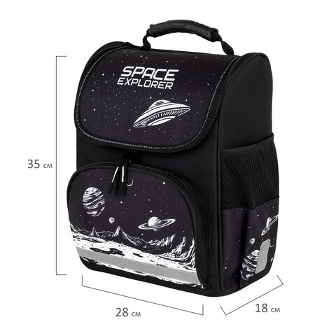 Ранец ПИФАГОР BASIC, 1 отделение, 3 кармана, эргономичная спинка, "Space invader", 35х28х18 см, 273140