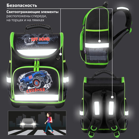 Ранец ЮНЛАНДИЯ WISE, 1 отделение, 3 кармана, устойчивое дно, "Crusher", 37x29х15 см, 271399