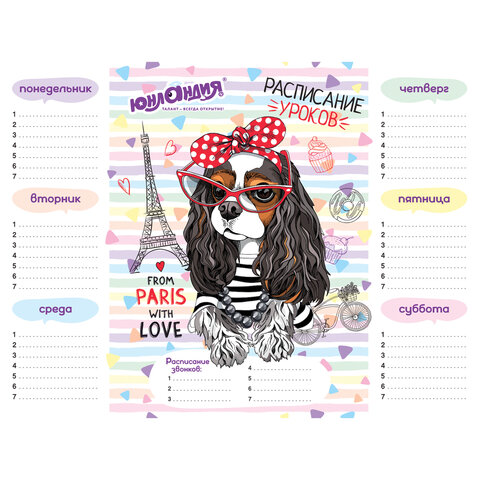 Расписание уроков ЮНЛАНДИЯ разработано специально для детей школьного возраста. Оно идеально подходит для планирования и подготовки заданий в домашних условиях. Поставляется в четырех вариантах дизайна (без возможности выбора).