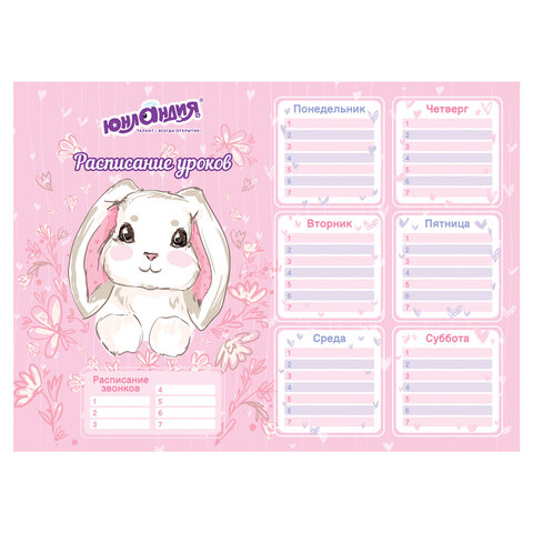 Расписание уроков и звонков А4, ЮНЛАНДИЯ, "Весёлые зверята", ассорти (4 вида), 111655