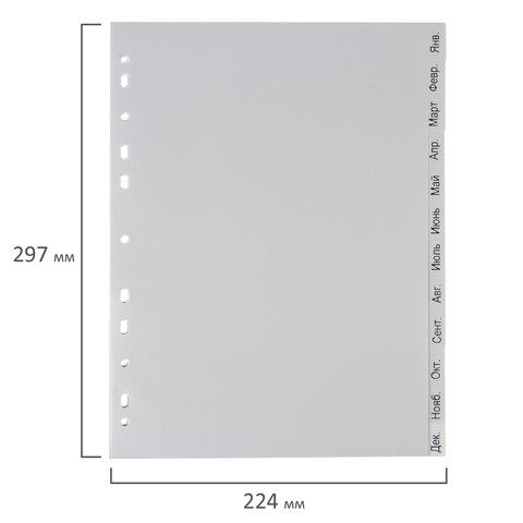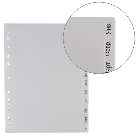 Разделитель пластиковый ОФИСМАГ, А4, 12 листов, Январь-Декабрь, оглавление, серый, РОССИЯ, 225606