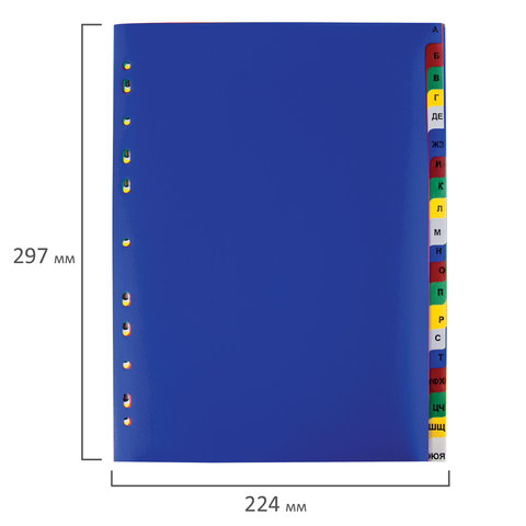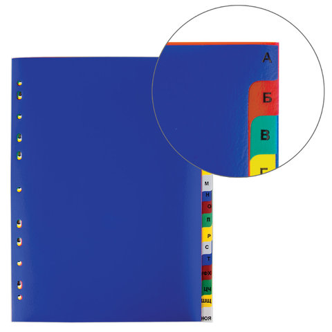 Разделитель пластиковый ОФИСМАГ, А4, 20 листов, алфавитный А-Я, оглавление, цветной, РОССИЯ, 225619
