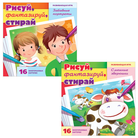 Карточки развивающие "Рисуй стирай" 16 карточек АССОРТИ, 180х180 мм, HATBER