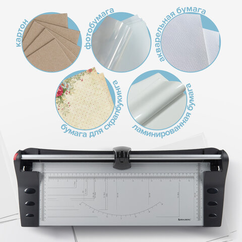 Роликовый резак для бумаги BRAUBERG может использоваться в офисах, учебных заведениях, фотомастерских для работы с документами и фотографиями, а также дома для хобби и творчества. Позволяет одновременно разрезать до 10 бумажных листов формата А3.