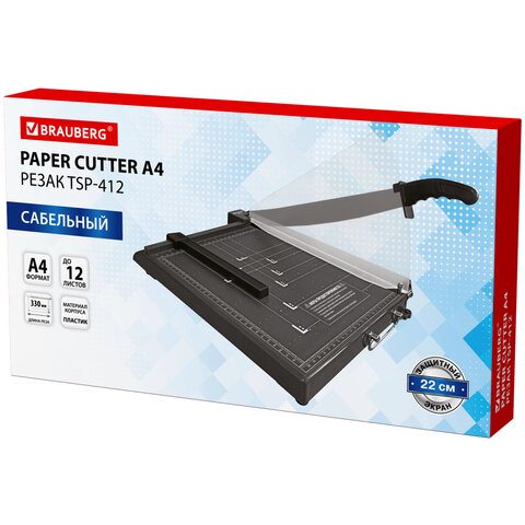 Резак сабельный BRAUBERG KATANA TSP-412, А4, на 12 л., длина реза 330 мм, пластиковое основание, защитный экран, 532987