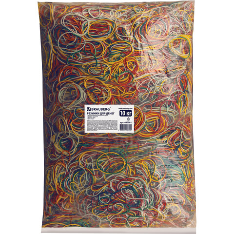 Резинки банковские универсальные диаметром 60 мм, BRAUBERG 10 кг, цветные, натуральный каучук, 440081
