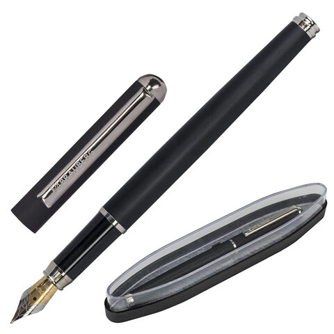 Ручка подарочная перьевая BRAUBERG "Larghetto", СИНЯЯ, корпус черный с хромированными деталями, 143477