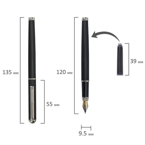 BRAUBERG "LARGHETTO" – это стильная и удобная перьевая ручка, которая не только порадует своего владельца, но и станет отличным подарком. Картридж с чернилами находится внутри корпуса.