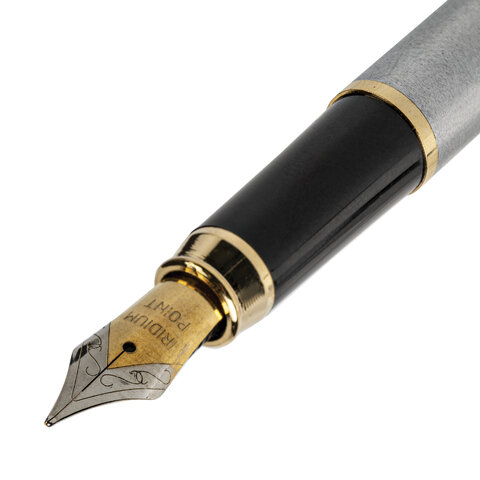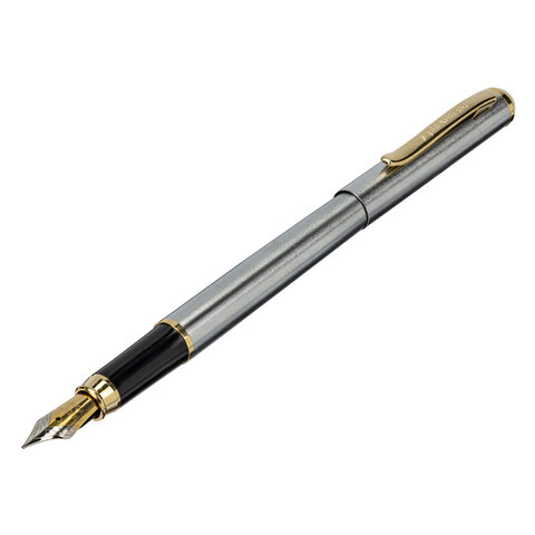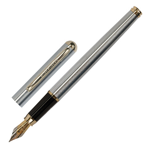 Ручка подарочная перьевая BRAUBERG "Maestro", СИНЯЯ, корпус серебристый с золотистыми деталями, 143469
