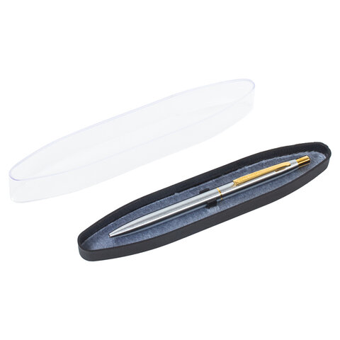 Ручка подарочная шариковая BRAUBERG Brioso, СИНЯЯ, корпус серебристый с золотистыми деталями, линия письма 0,5 мм, 143463