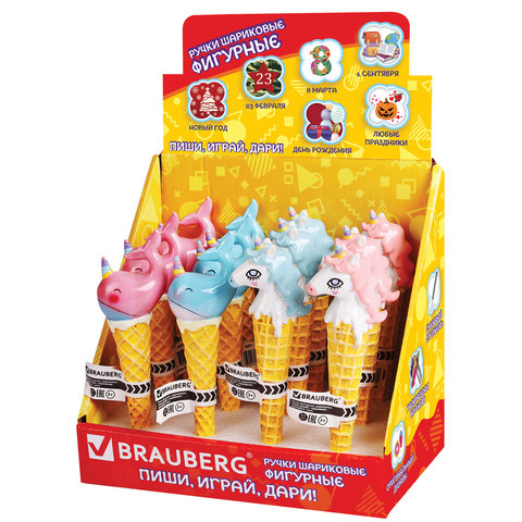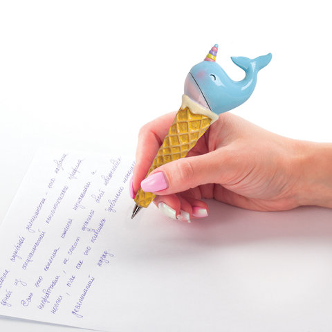 Ручка фигурная "МОРОЖЕНОЕ-ЕДИНОРОГИ-КИТЫ", СИНЯЯ, 4 дизайна ассорти, 0,5 мм, BRAUBERG, 142765