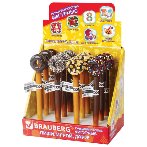Ручка фигурная "ПОНЧИКИ", СИНЯЯ, 4 дизайна ассорти, линия письма 0,5 мм, дисплей, BRAUBERG, 142759