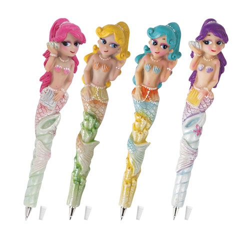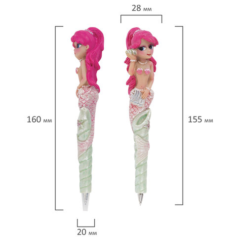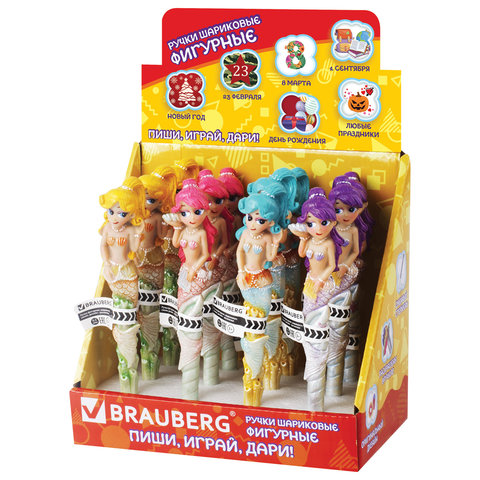 Ручка фигурная "РУСАЛОЧКИ", СИНЯЯ, 4 дизайна ассорти, линия письма 0,5 мм, дисплей, BRAUBERG, 142761