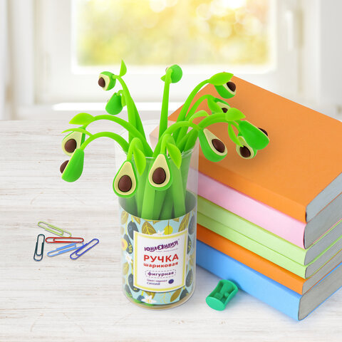 Шариковая ручка ЮНЛАНДИЯ "Авокадо" с мягким силиконовым корпусом.